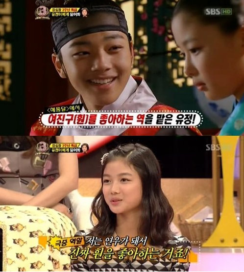 김유정은 9일 방송된 SBS ‘강심장’ 3주년 특집에 출연해 MBC드라마 ‘해를 품은 달’(이하 ‘해품달’)에 같이 출연했던 여진구를 실제로 좋아했다고 밝혔다.