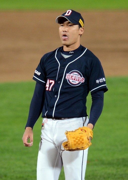 12일 부산 사직야구장에서 열린 2012 프로야구 준플레이오프 4차전 롯데자이언츠 대 두산베어스 경기 8회말 1사 만루 두산 홍상삼이 롯데 황성용을 볼넷으로 출루시키며 실점을 하자 아쉬워하고 있다.