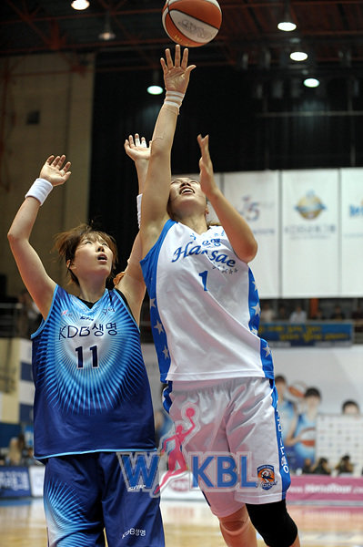4쿼터 초반이 고비였다. 우리은행이 2득점에 그치는 사이 KDB생명은 7점을 집어넣어 49-46까지 쫓아왔다. 그러나 이승아∼양지희∼박혜진이 연달아 슛을 꽂아넣어 다시 점수차를 회복했고, 이후 조직적 수비로 KDB생명의 추격을 막았다. 지난 시즌 7승33패로 최하위였던 우리은행은 쾌조의 스타트를 끊은 반면, KDB생명은 신정자의 더블더블(22점·11리바운드) 활약에도 불구하고 안방 개막전을 그르쳤다.