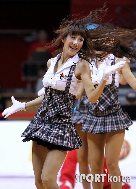 2012-2013 KB 국민카드 프로농구’ 고양 오리온스와 전주 KCC이지스와의 경기가 14일 오후 고양실내체육관에서 열렸다. 오리온스의 치어리더가 머리를 흩날리며 공연을 펼치고 있다.