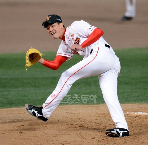 16일 인천 문학야구장에서 열린 2012 프로야구 플레이오프 1차전 SK와이번스 대 롯데자이언츠 경기에 선발 등판한 SK 김광현이 역투하고 있다.