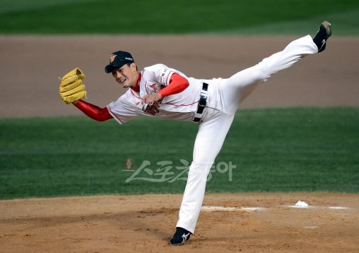 16일 인천 문학야구장에서 열린 2012 프로야구 플레이오프 1차전 SK와이번스 대 롯데자이언츠 경기에 선발 등판한 SK 김광현이 역투하고 있다.