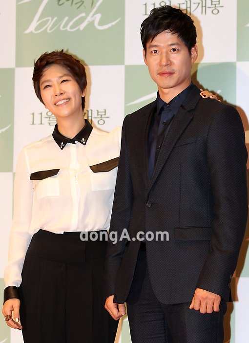배우 김지영(왼쪽)과 유준상이 17일 오후 서울 광진구 롯데시네마 건대입구에서 열린 영화 ‘터치’ 제작보고회에서 포토타임을 갖고 있다.