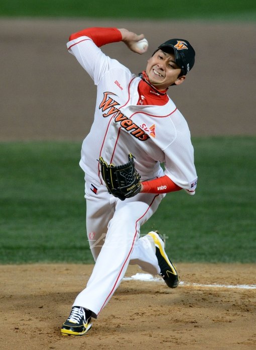 17일 인천 문학야구장에서 열린 2012 프로야구 플레이오프 2차전 SK와이번스 대 롯데자이언츠 경기에 선발 등판한 SK 윤희상이 역투하고 있다.