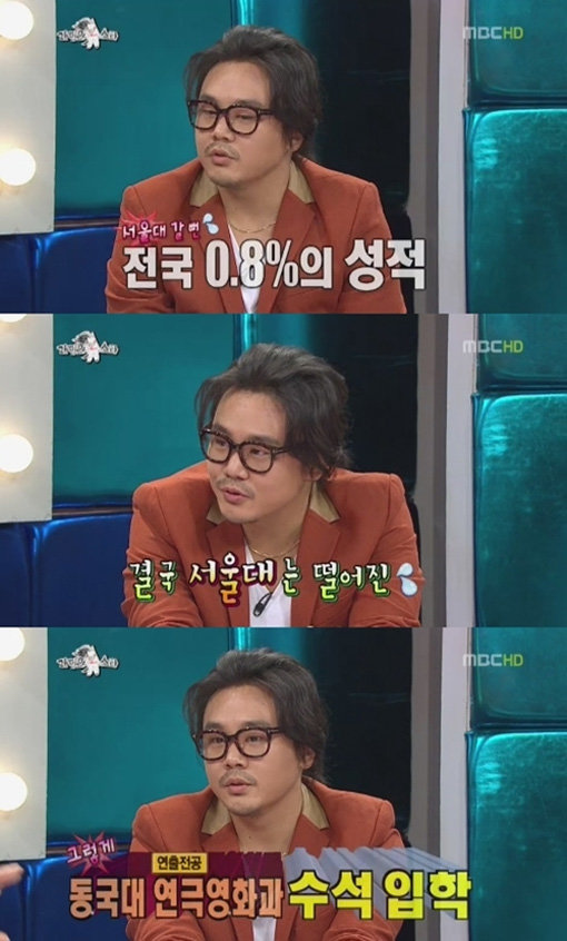 이에 MC들이 “전국 0.8%였다?”고 묻자 김인권은 “성적이 나쁜 편은 아니었다. 서울대는 떨어졌고 동국대를 가면 수석이었다. 동국대는 영화를 하고 싶어서 갔다. 연극영화과 연출전공 수석 입학이었다”고 밝혔다.