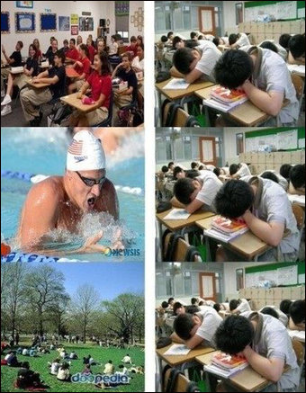 공개된 사진은 외국 청소년들과 한국 청소년들의 생활을 비교하며, 한국 청소년들이 키가 크지 않는 이유를 설명하고 있다.