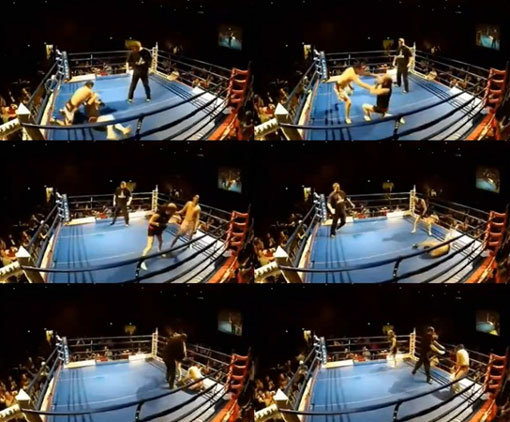 이후 노인은 청년의 얼굴에 어퍼컷을 날리고 정신을 차리지 못하는 사이 다시한 번 공격을 한다. 이 펀치에 20대 선수는 링에 쓰러지고, 심판은 경기 중단을 선언했다.
