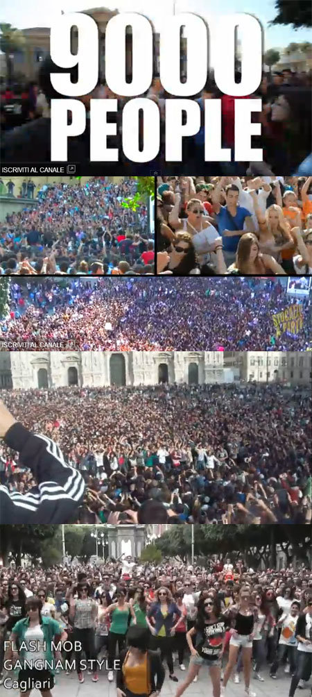 이탈리아 밀란 외에도 피아자 두오모, 칼리아리, 카타니아, 토레 델 그래코 등 각 지역에는 수천 명의 사람들이 함께 모여 ‘강남스타일’ 춤을 함께 추는 장관이 펼쳐졌다.