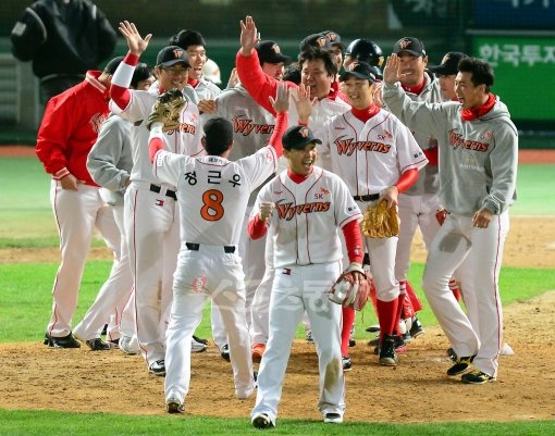 천신만고 끝에 한국시리즈에 진출한 SK는 오는 24일 대구 시민 야구장에서 디펜딩 챔피온 삼성 라이온즈와 2012 한국시리즈 1차전을 치른다.