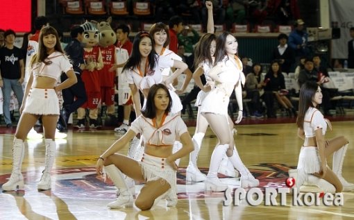 23일 오후 서울 잠실학생체육관에서 `2012-2013 KB국민카드 프로농구` 서울 SK나이츠와 고양 오리온스의 경기가 열리기 전 SK치어리더들의 특별공연이 펼쳐지고 있다.