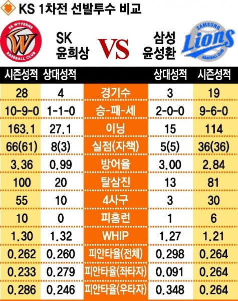 ○SK 윤희상 VS 삼성 윤성환의 1차전 선발 빅뱅