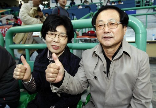 2010 프로야구 한국시리즈 1차전 SK와이번스 대 삼성라이온즈 경기가 15일 인천문학야구장에서 열렸다. SK조동화와 삼성 조동찬 부모님. 문학 | 김종원기자 won@donga.com