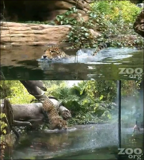 그런데 이 재규어의 헤엄치는 모습이 능숙한 데다가 움직이기 위해 발버둥을 치는 모습이 우스꽝스러워 웃음을 자아냈다.
