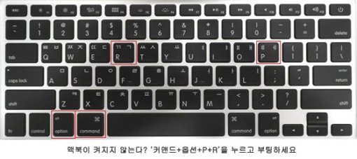 가끔 부팅이 되지 않거나 화면이 뜨지 않는 등 맥북에 이상이 발생하는 경우가 있다. 진짜 심각한 문제일 수도 있으나, 사실 거의 대다수의 문제는 ‘PRAM 소거’만 하면 해결할 수 있다. ‘PRAM 소거’는 PRAM에 남아있는 잔여 데이터(램 디스크, 가상 메모리, 디스크 캐시 등)를 제거해 소프트웨어의 문제를 해결하는 기능이다. 처음 부팅할 때 키보드의 ‘커맨드+옵션+P+R’을 함께 누르고 있으면 PRAM 소거를 실행한다.