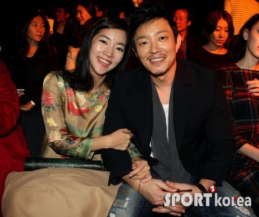 이범수-이윤진(왼쪽) 부부가 26일 오후 서울 용산 전쟁기념관에서 열린 ‘2013 S/S 서울 패션 위크’ 지춘희 디자이너 컬렉션에 참석해 다정한 포즈를 취하고 있다.