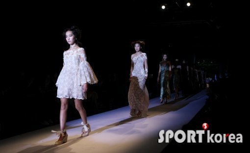 황신혜의 딸 박지영 양(왼쪽)이 26일 오후 서울 용산 전쟁기념관에서 열린 ‘2013 S/S 서울 패션 위크’ 지춘희 디자이너 컬렉션에 출연해 피날레 무대를 장식하고 있다.