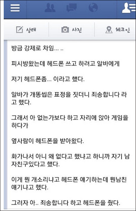 알고보니 PC방 여직원은 ‘헤드폰’을 ‘핸드폰’으로 오해하고 자신은 남자친구가 있다며 죄송하다고 한 것.