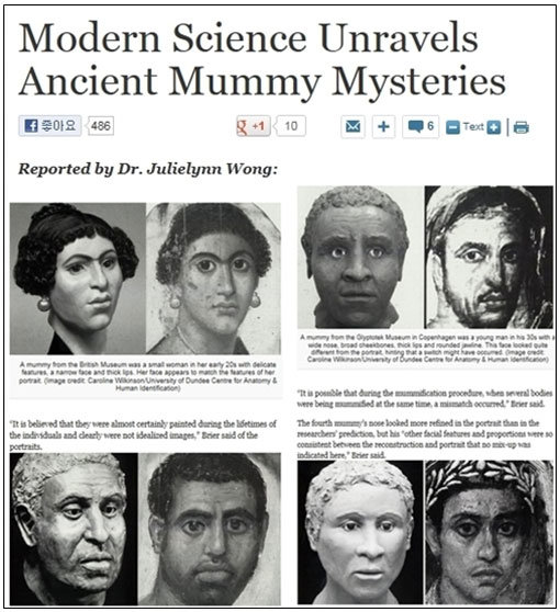 보도에 따르면 실제 얼굴이 복원된 4구의 미라는 A.D. 1세기 경 이집트에서 만들어진 것으로 알려졌다.
