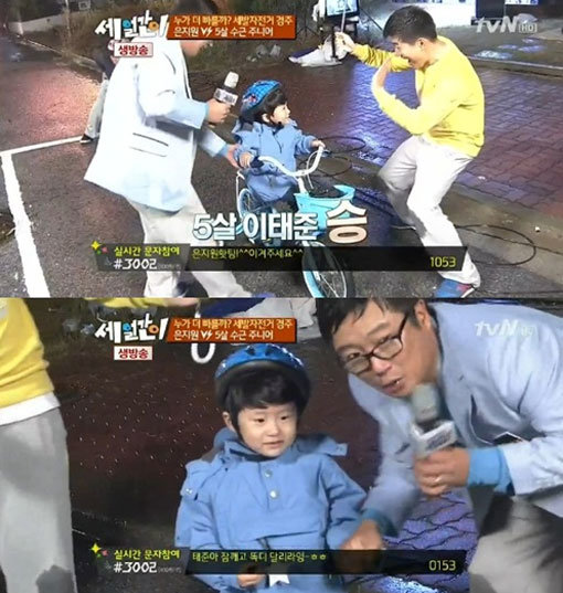 이날 은지원과 빗속 세발자전거 레이스를 펼친 태준 군은 아빠를 닮아 귀여운 외모를 뽐냈다. 또한 함께 자전거레이스를 펼쳤던 은지원의 볼에 뽀뽀를 하는 등 귀여운 매력을 발산했다.