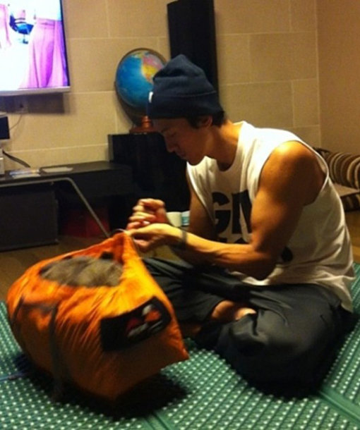 공개된 사진에서 이기우는 민소매 티셔츠를 입고 캠핑을 준비하는데 분주한 모습을 보이고 있다. 그의 떡 벌어진 어깨와 탄탄한 팔근육을 과시했다.