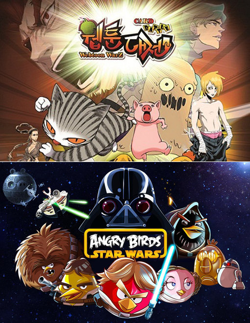 국내 최대 앱장터 T스토어를 운영하는 SK플래닛이 출품한 ‘웹툰대전’(위쪽)과 ‘앵그리버드 스타워즈’.