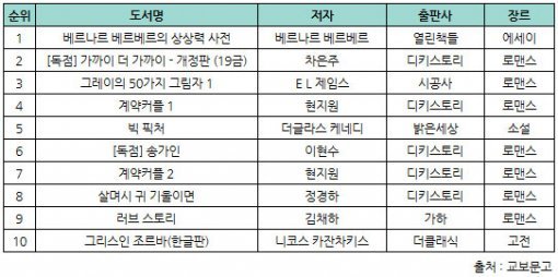 교보문고에서는 주로 소설책이 강세를 보였다. 최근 더글라스 케네디의 신작 '템테이션'이 인기몰이 중인데, 이에 따라 저자의 다른 작품인 '빅 픽처'도 재조명을 받았다. 소설 속 주인공 '벤'은 어린 시절부터 사진가를 꿈꿨지만, 아버지의 반대로 변호사가 됐다. 그러던 어느 날, 그는 자신의 아내가 이웃집에 사는 사진가 게리와 불륜에 빠진 것을 알아차린다. 화가 난 벤은 게리와 말싸움을 벌이다가 우발적으로 그를 살해한다. 벤은 요트 사고를 위장해 게리의 시신을 없애고, 남은 생애를 게리로 살아가기로 결심한다. 게리의 직업이 사진가였던 만큼 그는 어린 시절의 꿈도 이루게 된다. 그런데 그가 찍은 인물 사진이 지역 신문에 실리면서, 그는 비밀을 들킬 위기에 처하게 된다.