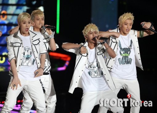 B.A.P(비에이피)가 11일 오후 서울 올림픽공원 체조경기장에서 열린 ‘2012 사랑 나눔 콘서트’에 출연해 화려한 공연을 펼치고 있다.