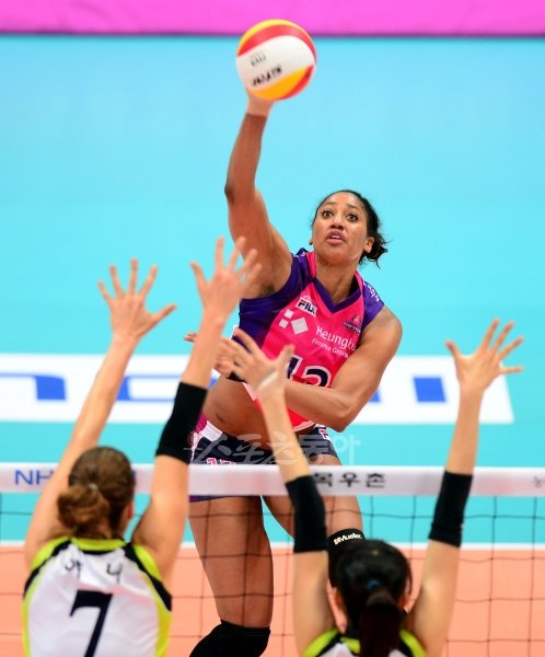 인삼공사는 13일 V리그 여자부 홈경기에서 흥국생명에 세트스코어 3-1(17-25 25-17 25-22 27-25) 역전승을 거뒀다.