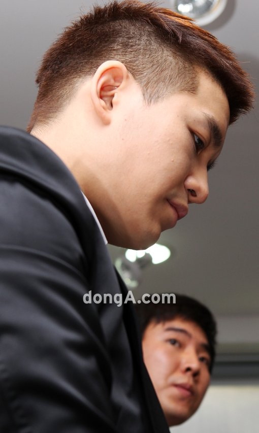 사기혐의를 받고 있는 그룹 젝스키스 출신 강성훈이 15일 오후 서울 강남구 신사동 한 빌딩에서 기자회견을 갖고 심경을 고백하고 있다.