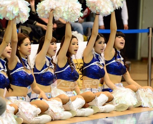 16일 오후 서울 잠실실내체육관에서 열린 `2012-2013 KB 국민카드 프로농구` 서울 삼성 썬더스와 KGC 인삼공사의 경기에서 삼성 치어리더가 열정적인 응원을 펼치고 있다.