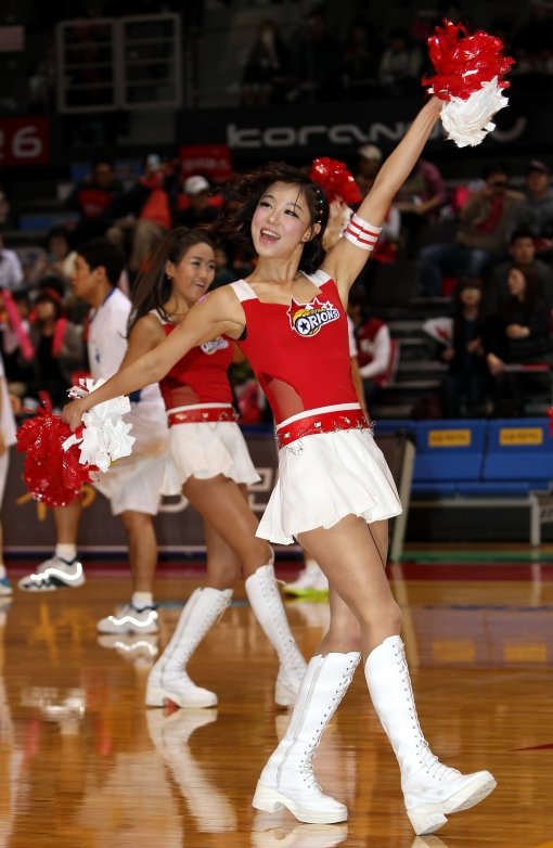 18일 고양 실내체육관에서 열린 2012-2013 KB 국민카드 프로농구 고양 오리온스와 서울삼성썬더스의 경기에서 오리온스 치어리더가 상큼한 공연을 펼치고 있다.