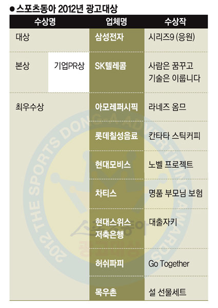 2012 스포츠동아 광고대상 총 9개 작품 수상