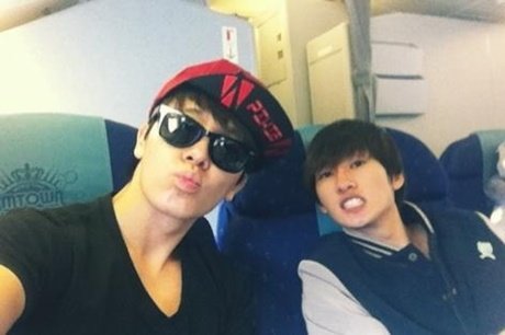동해와 은혁은 SM엔터테인먼트 전세기 내부에서 나란히 장난끼 넘치는 표정을 지어보였다.