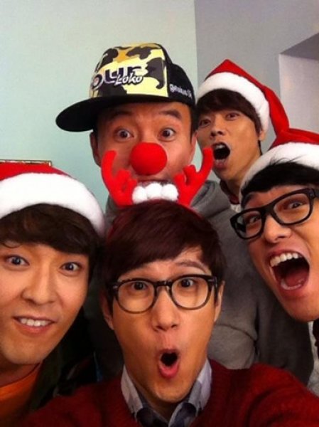 공개된 사진 속에에는 스윗소로우 멤버들과 오중석이 크리스마스 분위기가 물씬 풍기는 분장을 하고 셀카를 찍고 있다.
