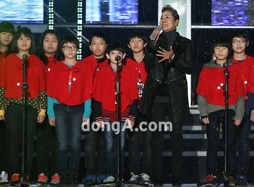가수 인순이가 학생들과 노래 ‘거위의 꿈’을 부르고 있다.