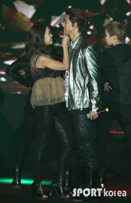 가수 백지영과 2PM 택연(오른쪽)이 29일 오후 서울 올림픽홀에서 열린 `물이 빛나는 밤에` 뮤직 페스티벌에 출연해 화려한 퍼포먼스를 펼치고 있다.