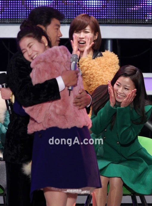 가수 설운도가 탈북미녀 신은하와 포옹을 하고 있다.