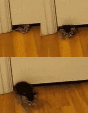 공개된 영상에서는 한 고양이가 좁은 문틈 사이로 고개를 빼꼼 내민다. 이어 좁은 문틈 사이에 유유히 빠져 나온다.