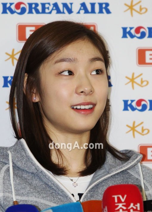피겨여왕 김연아가 5일 오후 인천국제공항 출국장 앞에서 취재진의 질문에 답변을 하고 있다.