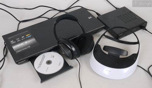 다음은 영화를 감상해 볼 차례다. 영화 감상 시에 가장 중요한 것은 현장감이다. 특히 최근 인기를 끌고 있는 3D영화에 생생한 음향이 더해진다면 금상첨화다. MDR-MA900과 3D영화와의 궁합을 살펴보기 위해 머리에 쓰고 3D영상을 감상할 수 있는 HMD(헤드마운트디스플레이)기기인 소니 MHZ-T2를 이용했다. 3D 블루레이 플레이어(소니 BDP-S490)와 연결된 소니 MHZ-T2에 MDR-MA900를 꽂고 3D영화 타이틀을 감상해 봤다.
