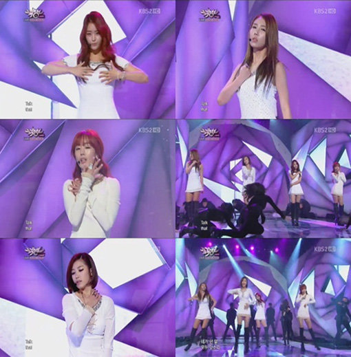 시크릿은 이날 화이트 미니원피스를 입고 등장해 한층 성숙해진 매력을 발산했다. 특히 멤버 전효성의 베이글녀답게 환상적인 몸매라인을 드러내 남심을 사로잡았다. 또 독특한 ‘그림자 안무’를 선보여 눈길을 끌었다.