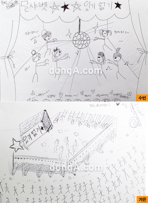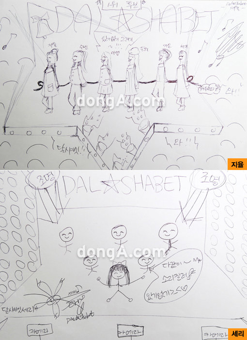 -본 그림은 달샤벳 멤버들이 무대에 선 자신의 모습을 직접 그린 것이다.
