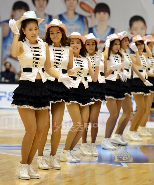 7일 구리 체육관에서 열린 'KDB금융그룹 2012-2013 여자프로농구' 구리 KDB생명과 용인 삼성생명의 경기에서 KDB생명 치어리더가 화려한 공연을 선보이고 있다.