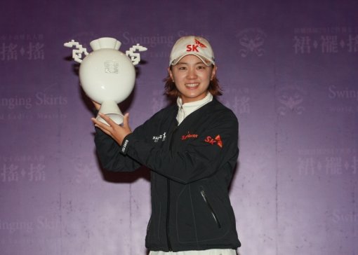 우승 트로피를 들어올리고 있는 최나연.