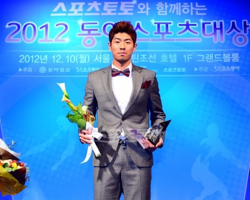 10일 오전 서울 웨스틴조선 호텔 그랜드볼룸에서 열린 2012 동아스포츠 대상 시상식에서 FC서울 하대성이 프로축구 올해의 선수상을 수상하고 있다.