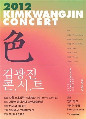 가수 겸 작곡가 김광진이 14·15일 서울 대학로 동덕여대 예술센터에서 ‘색’이란 제목으로 콘서트를 한다.