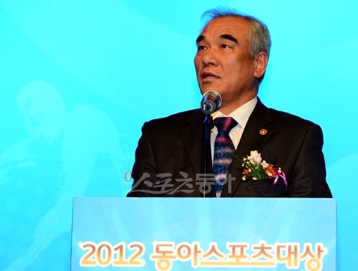 10일 오전 서울 웨스틴조선 호텔 그랜드볼룸에서 프로야구, 프로축구, 프로농구(남녀), 프로배구(남녀), 프로골프(남녀)등 국내 5대 스포츠 종목별로 올 한해를 빛낸 ‘2012년 최고의 선수’를 선정한 ‘2012 동아스포츠대상’ 시상식이 열렸다. 최광식 문화체육관광부 장관이 축사를 하고 있다. 박화용 기자 inphoto@donga.com 트위터 @seven7sola