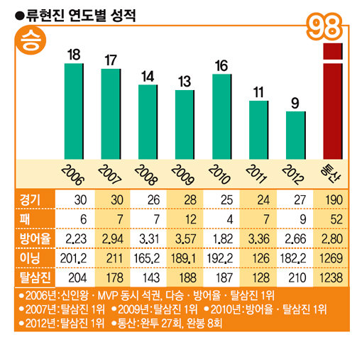류현진(25)은 LA 다저스와 입단계약을 체결하며 흥미로운 조항을 삽입했다. “첫 번째 계약기간인 5년 이내에 750이닝 이상을 소화하면 그 이후 계약기간은 ‘옵트 아웃’ 할 수 있다”는 내용이다. 즉, 류현진이 기본조건인 750이닝 이상을 던지면 다저스와의 계약기간은 자동으로 만료되고, 프리에이전트(FA) 자격을 얻는다.