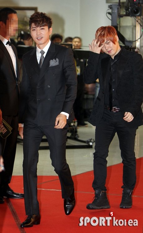 데니안, 문희준(오른쪽)이 14일 오후 서울 올림픽공원 체조경기장에서 열린 ‘2012 멜론 뮤직 어워드’에 참석하고 있다.