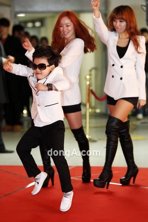 리틀 싸이 황민우 군이 14일 오후 서울 올림픽체조경기장에서 열린 ‘2012 멜론 뮤직 어워드’에 앞서 포토타임을 갖기 위해 레드카펫을 밟고 있다.